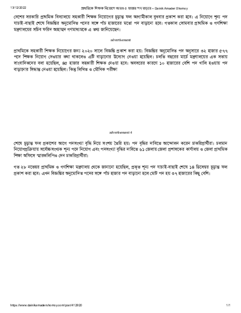 প্রাথমিকে শিক্ষক নিয়োগে আরও ৫ হাজার পদ বাড়বে – Dainik Amader Shomoy Published on 13 December 2022 Newspaper দৈনিক আমাদের সময় Category General Education General Education Download