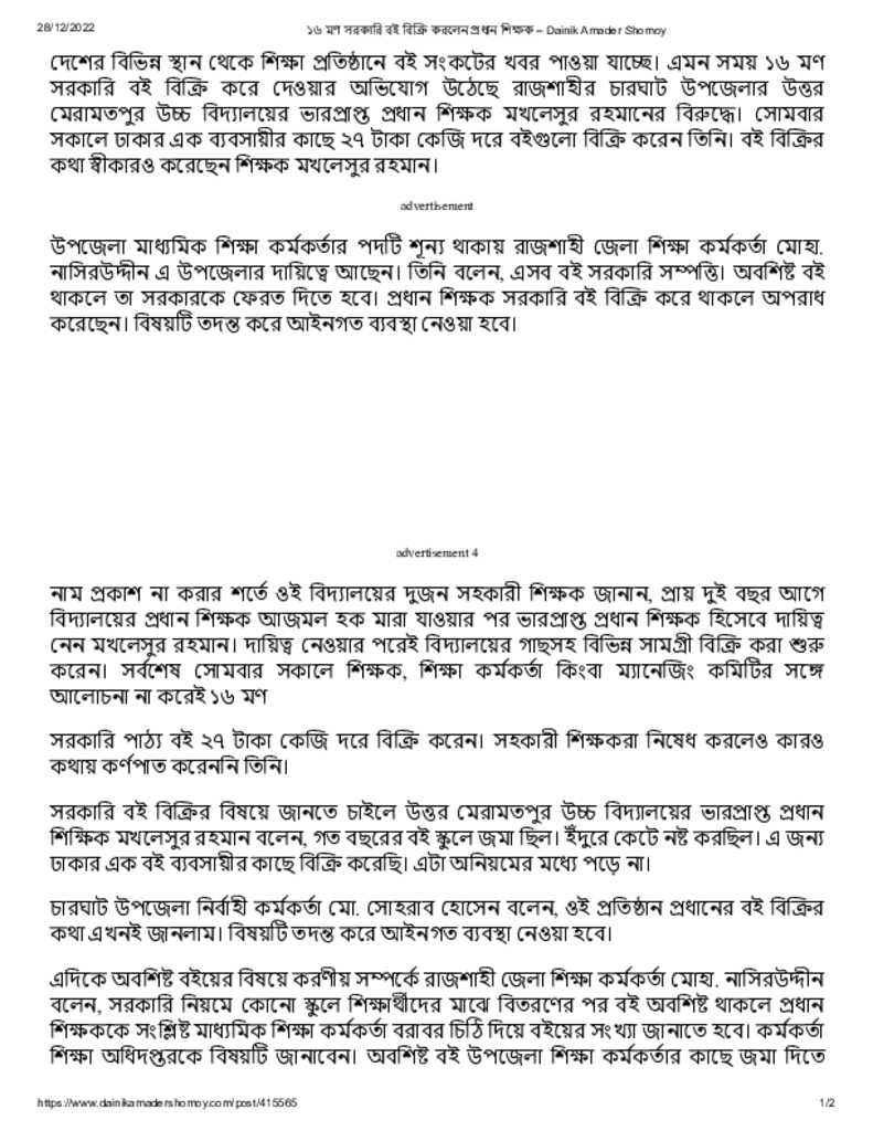 ১৬ মণ সরকারি বই বিক্রি করলেন প্রধান শিক্ষক – Dainik Amader Shomoy Published on 28 December 2022 Newspaper দৈনিক আমাদের সময় Category Others Download