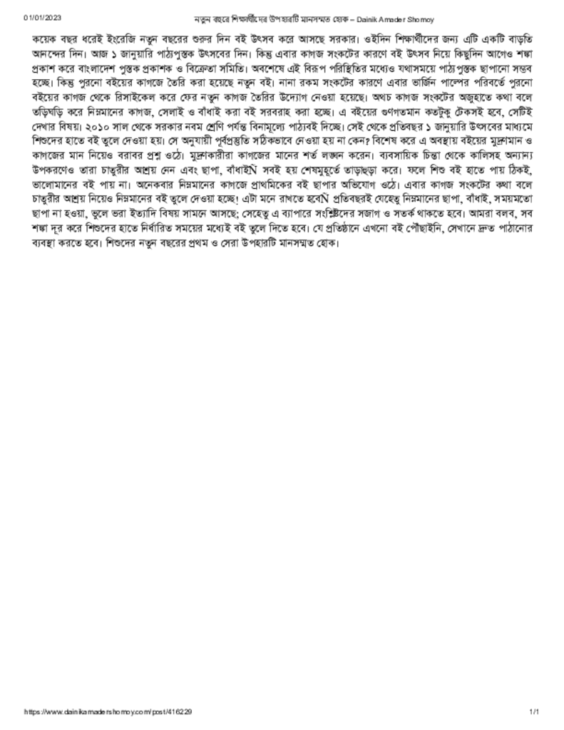 নতুন বছরে শিক্ষার্থীদের উপহারটি মানসম্মত হোক – Dainik Amader Shomoy Published on 01 January 2023 Newspaper দৈনিক আমাদের সময় Category Personal Opinion / Discussion / Commentary General Education Download