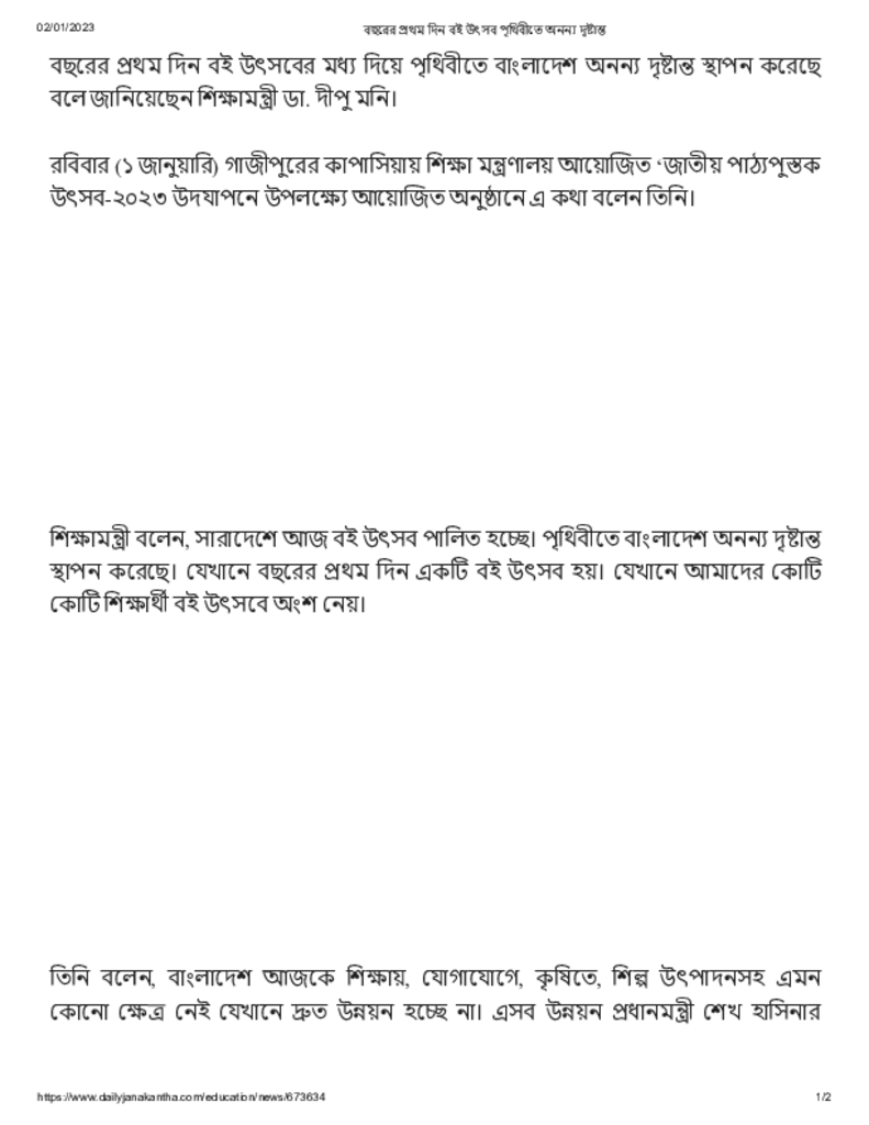 বছরের প্রথম দিন বই উৎসব পৃথিবীতে অনন্য দৃষ্টান্ত Published on 02 January 2023 Newspaper দৈনিক জনকণ্ঠ Category Book Day Download