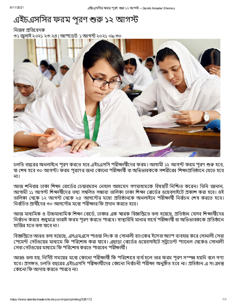 এইচএসসির ফরম পূরণ শুরু ১২ আগস্ট – Dainik Amader Shomoy.pdf Published on 01 August 2021 Newspaper দৈনিক আমাদের সময় Category Public Examination Public Examination HSC Download