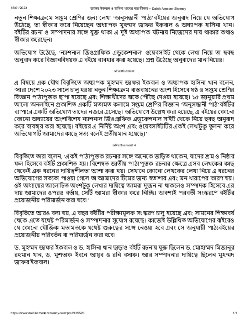 জাফর ইকবাল ও হাসিনা খানের দায় স্বীকার – Dainik Amader Shomoy Published on 18 January 2023 Newspaper দৈনিক আমাদের সময় Category Personal Opinion / Discussion / Commentary Download