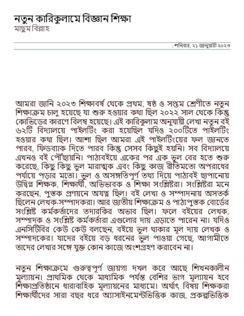নতুন কারিকুলামে বিজ্ঞান শিক্ষা _ সংবাদ অনলাইন.pdf Published on 21 January 2023 Newspaper দৈনিক সংবাদ Category ICT Education Download