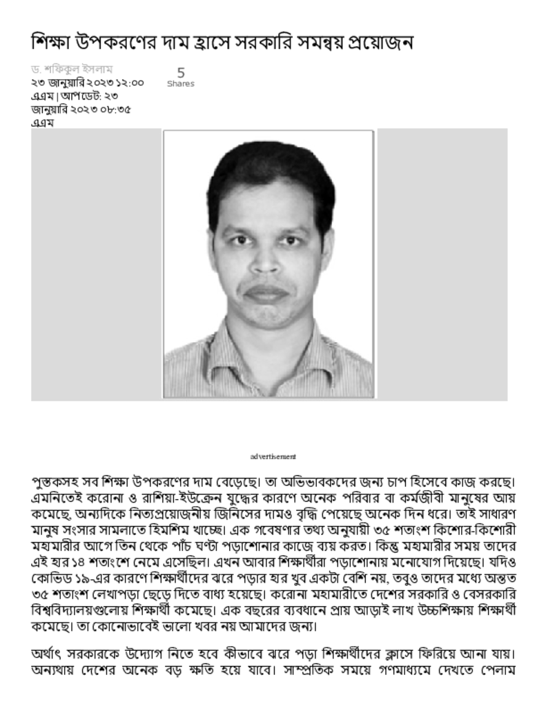 শিক্ষা উপকরণের দাম হ্রাসে সরকারি সমন্বয় প্রয়োজন – Dainik Amader Shomoy.pdf Published on 23 January 2023 Newspaper দৈনিক আমাদের সময় Category Personal Opinion / Discussion / Commentary Download