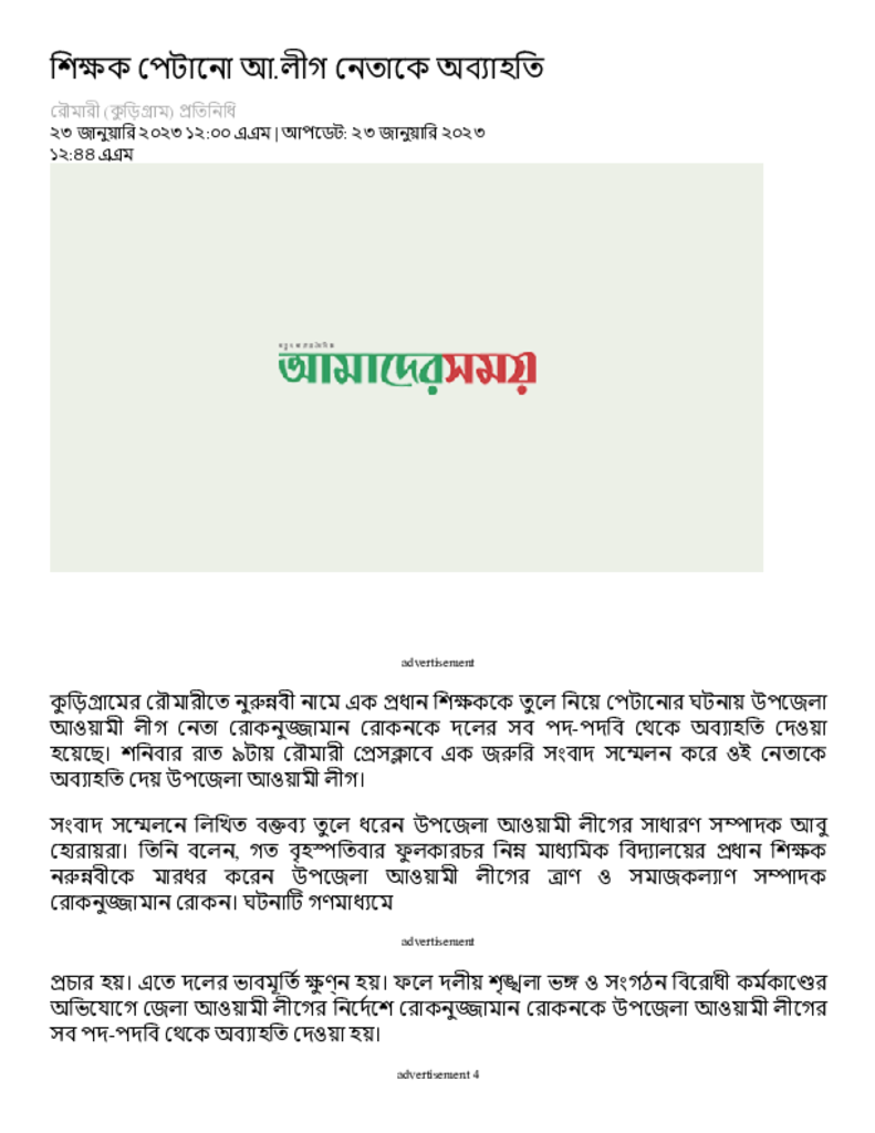 শিক্ষক পেটানো আ.লীগ নেতাকে অব্যাহতি – Dainik Amader Shomoy.pdf