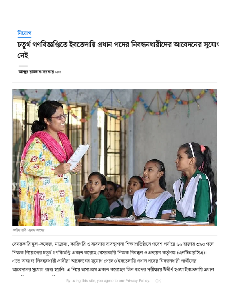 চতুর্থ গণবিজ্ঞপ্তিতে ইবতেদায়ি প্রধান পদের নিবন্ধনধারীদের আবেদনের সুযোগ নেই.pdf Published on 25 January 2023 Newspaper দৈনিক প্রথম আলো Category Madrasah Education Download