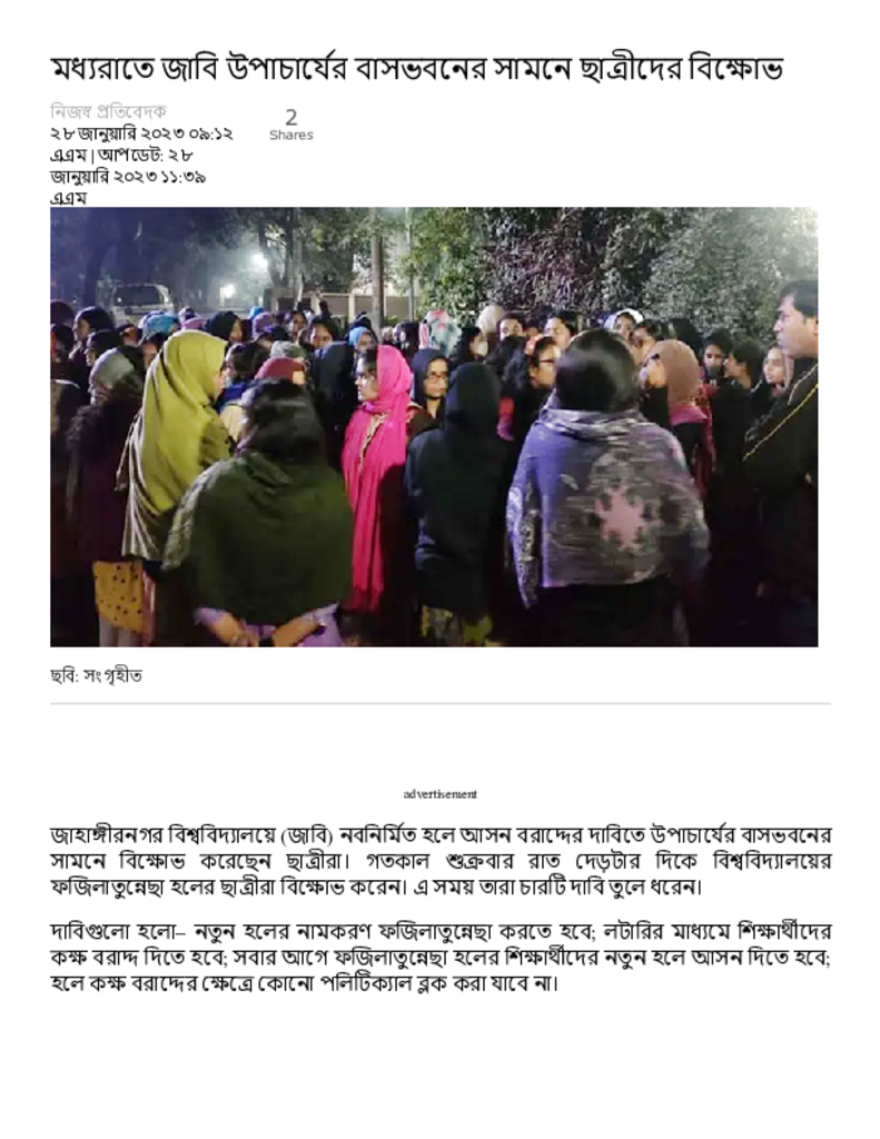 মধ্যরাতে জাবি উপাচার্যের বাসভবনের সামনে ছাত্রীদের বিক্ষোভ – Dainik Amader Shomoy.pdf Published on 29 January 2023 Newspaper দৈনিক আমাদের সময় Category Others General Education Download