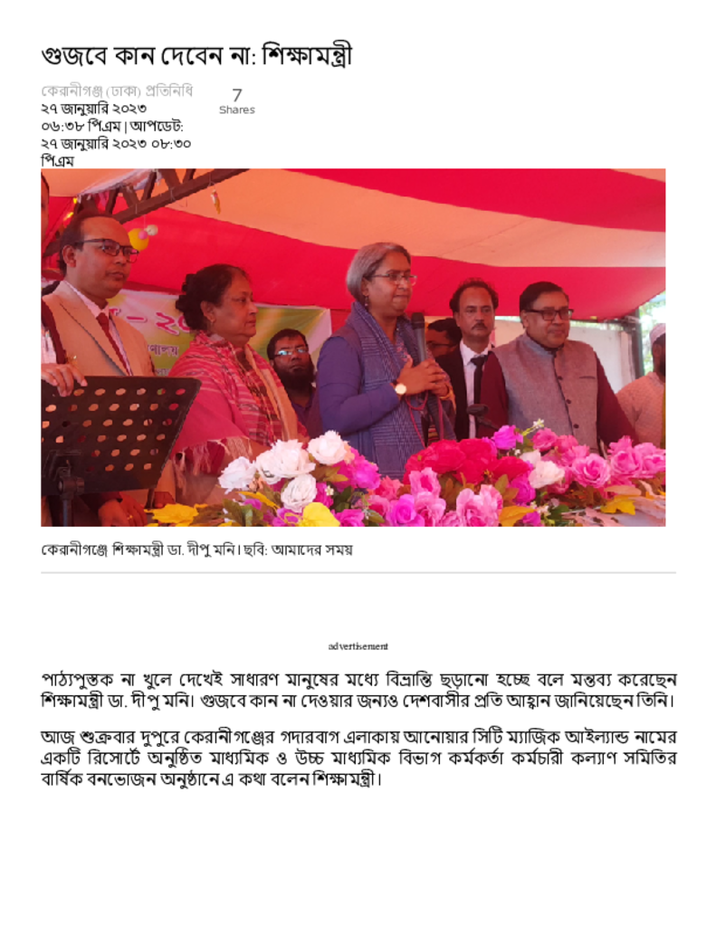 গুজবে কান দেবেন না_ শিক্ষামন্ত্রী – Dainik Amader Shomoy.pdf Published on 27 January 2023 Newspaper দৈনিক আমাদের সময় Category Educational Ministry / Departments Download