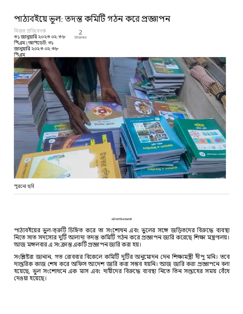 পাঠ্যবইয়ে ভুল_ তদন্ত কমিটি গঠন করে প্রজ্ঞাপন – Dainik Amader Shomoy.pdf Published on 31 January 2023 Newspaper দৈনিক আমাদের সময় Category Educational Ministry / Departments Download