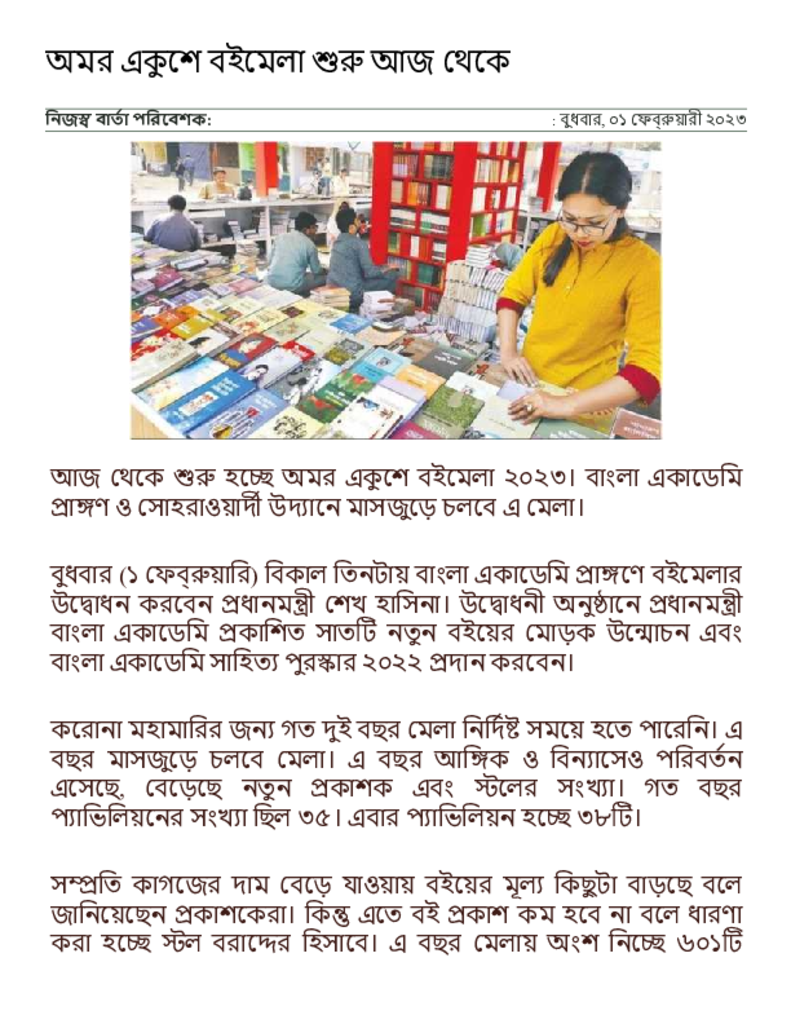 অমর একুশে বইমেলা শুরু আজ থেকে _ সংবাদ অনলাইন.pdf Published on 01 February 2023 Newspaper দৈনিক সংবাদ Category Book Fair Download