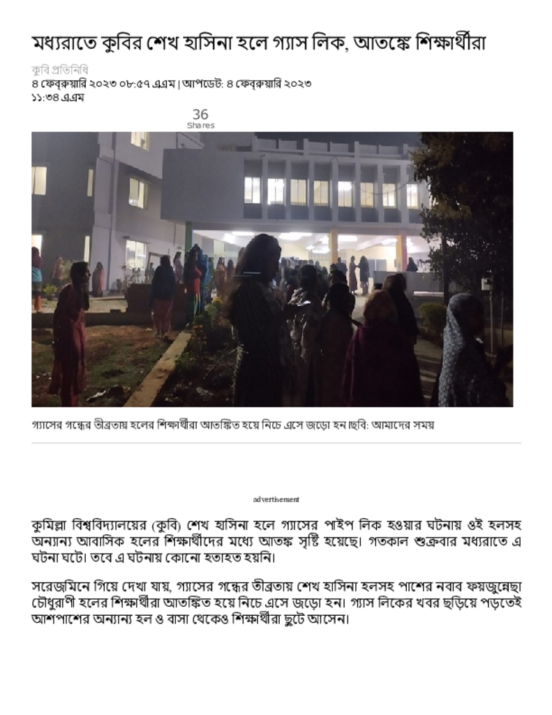 মধ্যরাতে কুবির শেখ হাসিনা হলে গ্যাস লিক, আতঙ্কে শিক্ষার্থীরা – Dainik Amader Shomoy.pdf Published on 04 February 2023 Newspaper দৈনিক আমাদের সময় Category Others General Education Download