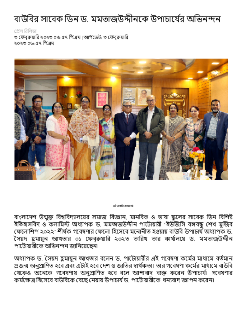 বাউবির সাবেক ডিন ড. মমতাজউদ্দীনকে উপাচার্যের অভিনন্দন – Dainik Amader Shomoy.pdf Published on 03 February 2023 Newspaper দৈনিক আমাদের সময় Category Others General Education Download