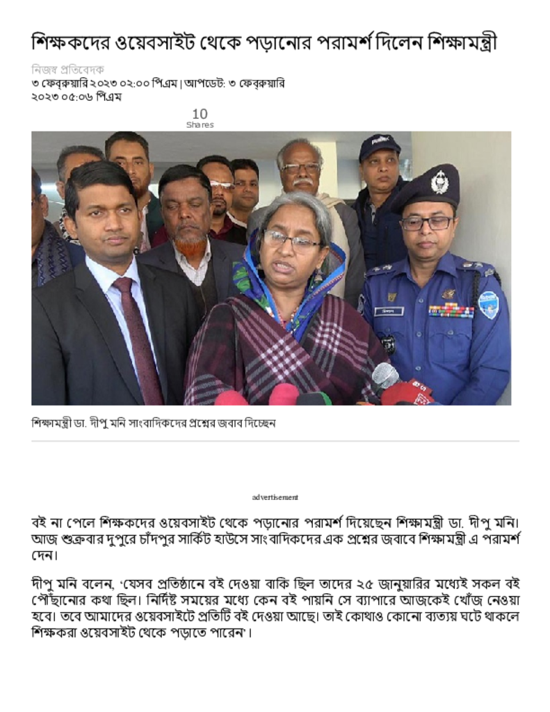 শিক্ষকদের ওয়েবসাইট থেকে পড়ানোর পরামর্শ দিলেন শিক্ষামন্ত্রী – Dainik Amader Shomoy.pdf Published on 03 February 2023 Newspaper দৈনিক আমাদের সময় Category Educational Ministry / Departments Download