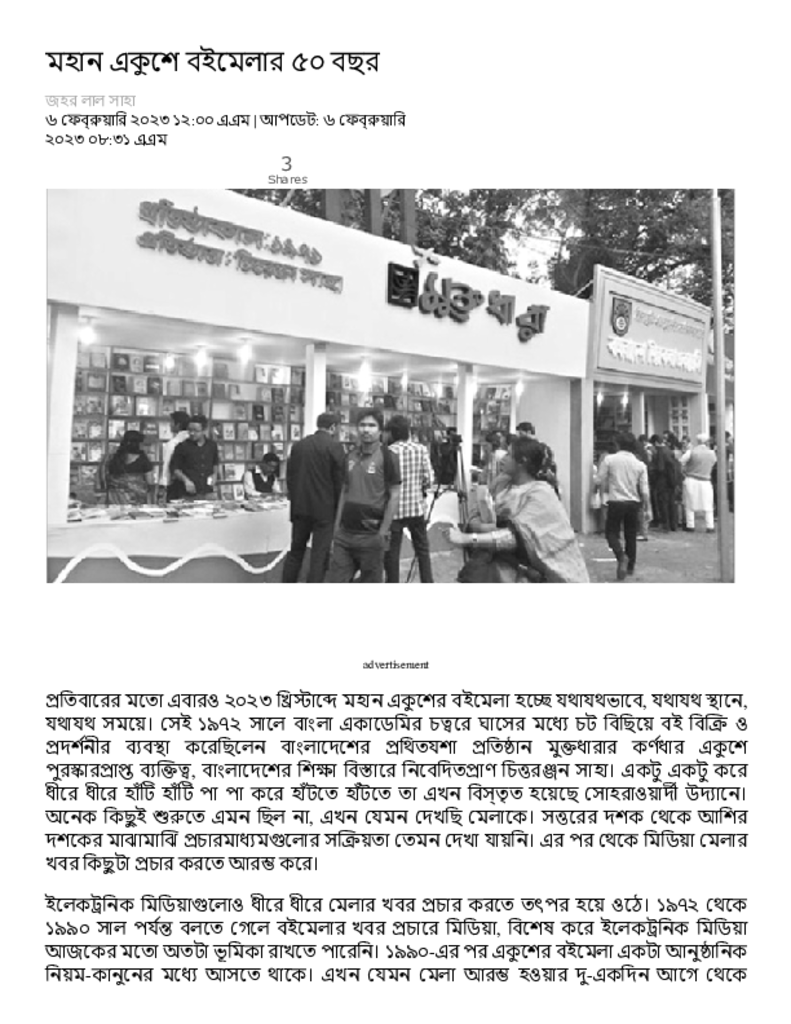 মহান একুশে বইমেলার ৫০ বছর – Dainik Amader Shomoy.pdf Published on 06 February 2023 Newspaper দৈনিক আমাদের সময় Category Book Fair Download