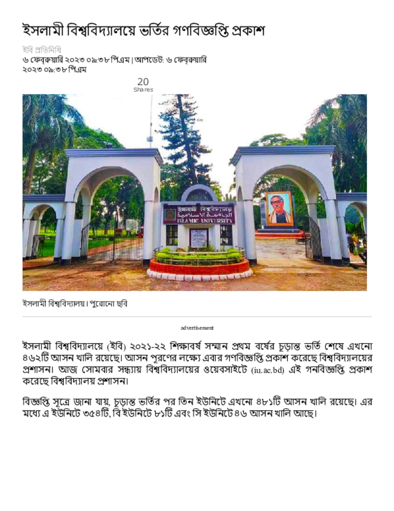 ইসলামী বিশ্ববিদ্যালয়ে ভর্তির গণবিজ্ঞপ্তি প্রকাশ – Dainik Amader Shomoy.pdf Published on 06 February 2023 Newspaper দৈনিক আমাদের সময় Category General Education General Education Download