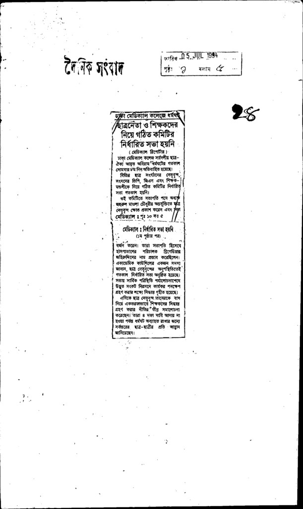 ঢাকা মেডিক্যাল কলেজে ধর্মঘট ছাত্রনেতা ও শিক্ষকদের নিযে গঠিত কমিটির নির্ধারিত সভা হয়নি Published on Newspaper দৈনিক সংবাদ Category Professional Education Professional Education Medical Download