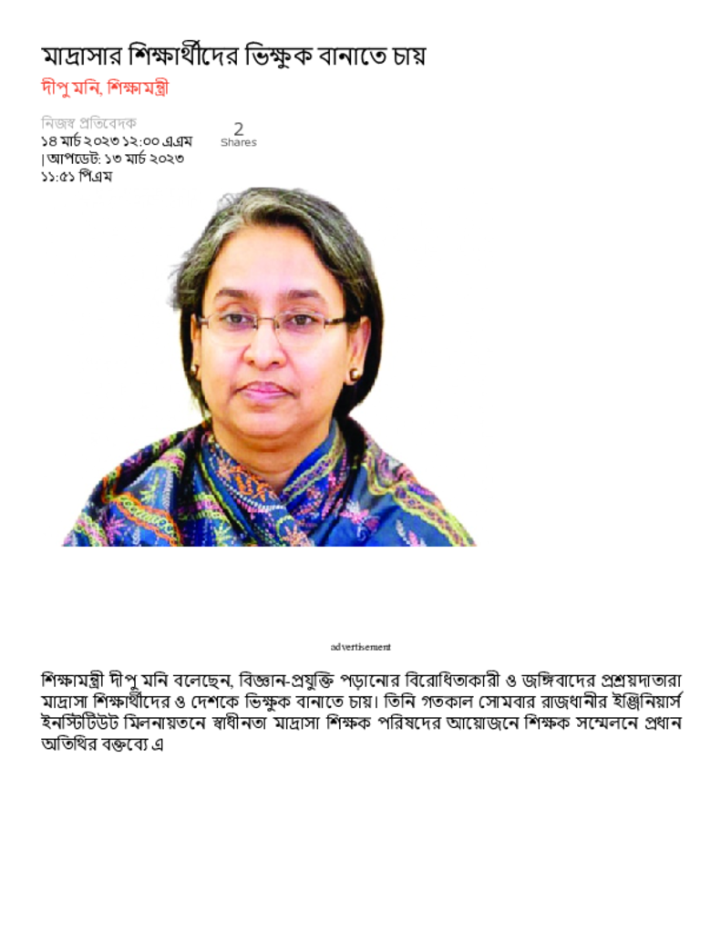 মাদ্রাসার শিক্ষার্থীদের ভিক্ষুক বানাতে চায় – Dainik Amader Shomoy.pdf Published on 14 March 2023 Newspaper দৈনিক আমাদের সময় Category Madrasah Education Download