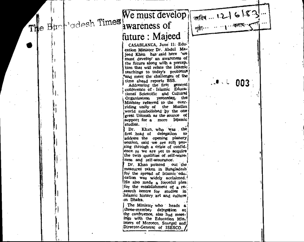 We must develop awareness of future majeed Published on Newspaper The Bangladesh Times Category Admission / Seat Problem Download