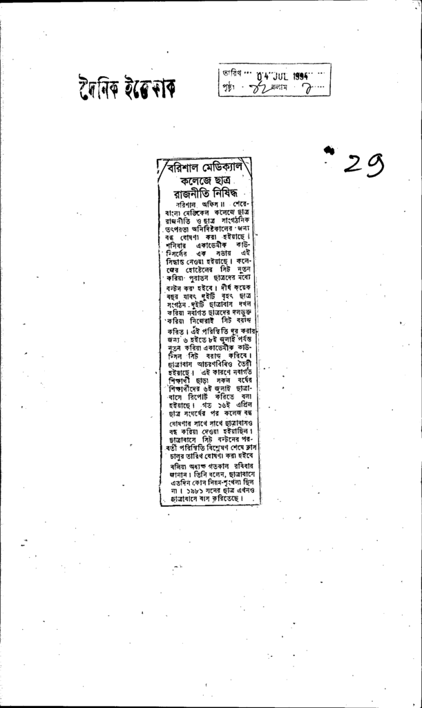 বরিশাল মেডিক্যাল কলেজে ছাত্র রাজনীতি নিষিদ্ধ