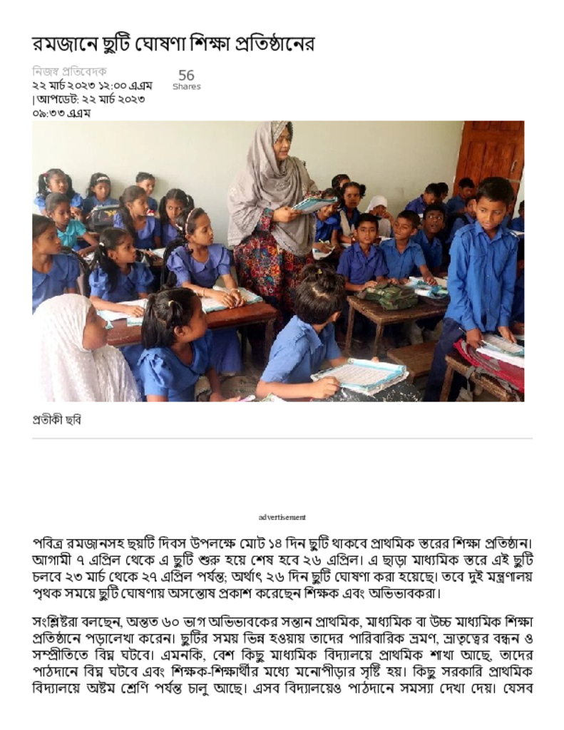 রমজানে ছুটি ঘোষণা শিক্ষা প্রতিষ্ঠানের – Dainik Amader Shomoy.pdf Published on 22 March 2023 Newspaper দৈনিক আমাদের সময় Category Educational Ministry / Departments Download