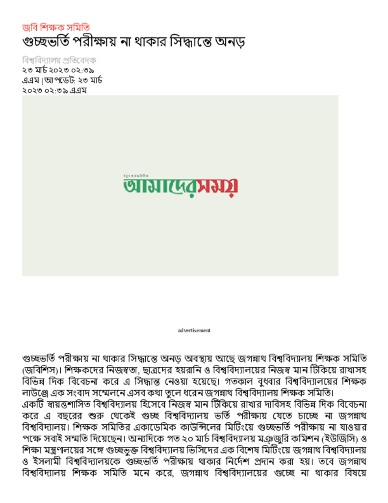 গুচ্ছভর্তি পরীক্ষায় না থাকার সিদ্ধান্তে অনড় – Dainik Amader Shomoy.pdf
