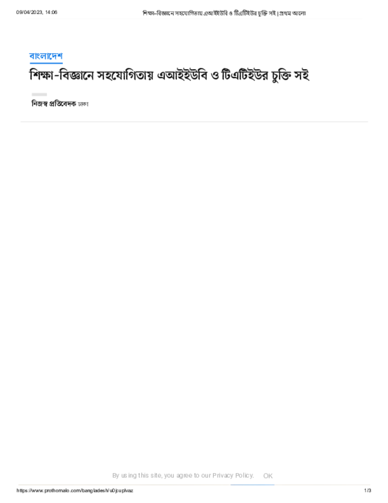 শিক্ষা–বিজ্ঞানে সহযোগিতায় এআইইউবি ও টিএটিইউর চুক্তি সই _ প্রথম আলো Published on 07 April 2023 Newspaper দৈনিক প্রথম আলো Category Science Education Download