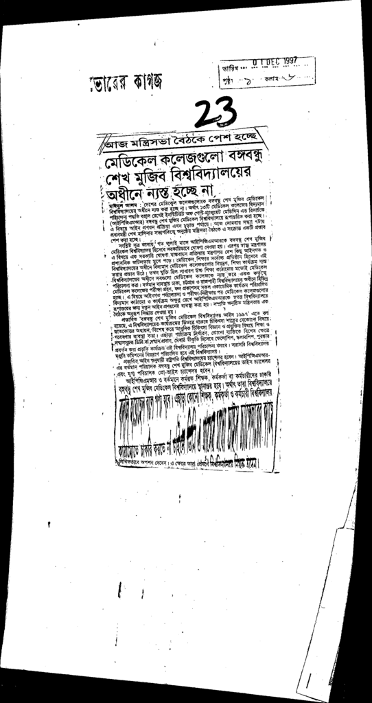 আজ মনিত্র সভা বৈঠকে পেশ হচ্ছে মেডিকেল কলেজগুলো বঙ্গবন্ধু শেখ মুজিব বিশ্ববিদ্যালয়ের অধীনে ন্যস্ত হচ্ছে না Published on Newspaper দৈনিক ভোরের কাগজ Category Professional Education Professional Education Medical Download