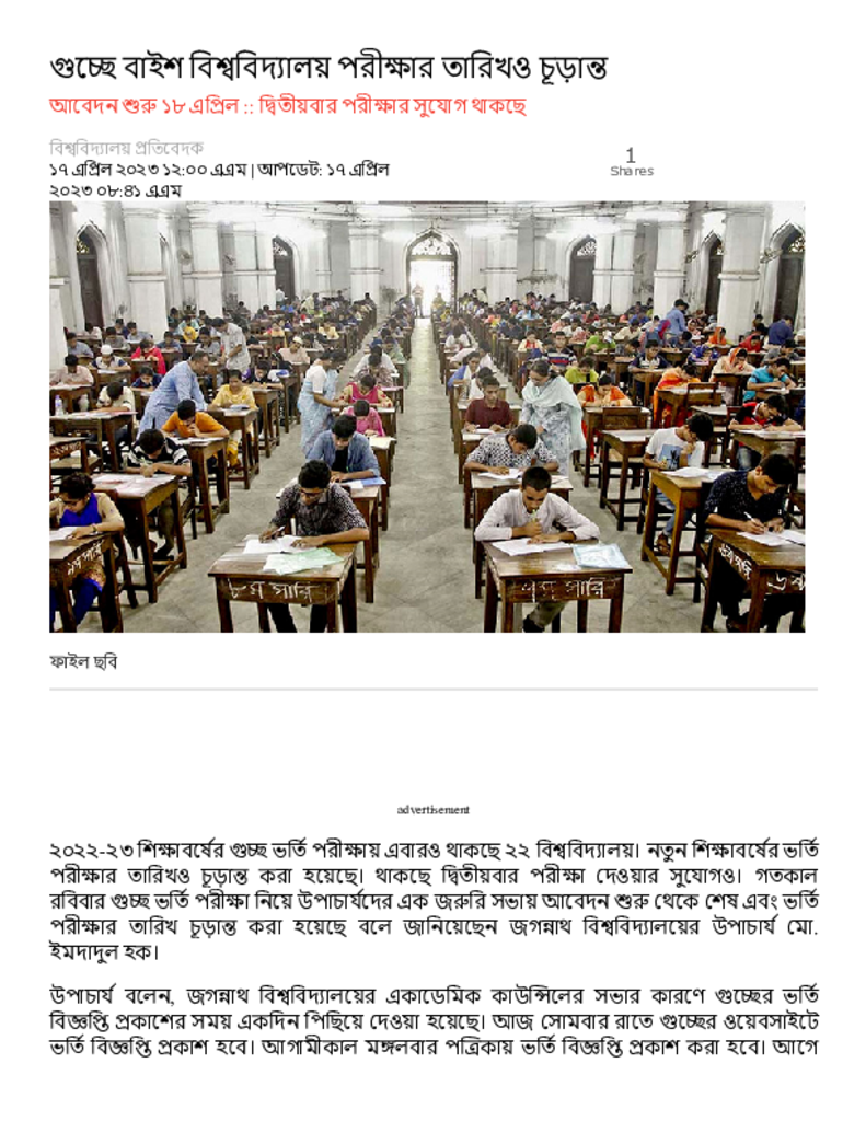 গুচ্ছে বাইশ বিশ্ববিদ্যালয় পরীক্ষার তারিখও চূড়ান্ত – Dainik Amader Shomoy.pdf Published on 17 April 2023 Newspaper দৈনিক আমাদের সময় Category Admission / Seat Problem General Education Download