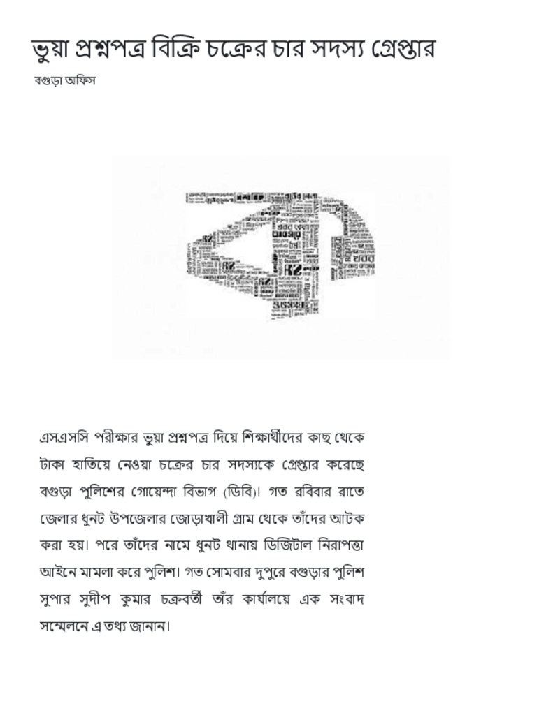 ভুয়া প্রশ্নপত্র বিক্রি চক্রের চার সদস্য গ্রেপ্তার.pdf Published on 03 May 2023 Newspaper দৈনিক কালের কন্ঠ Category Public Examination Public Examination SSC Download