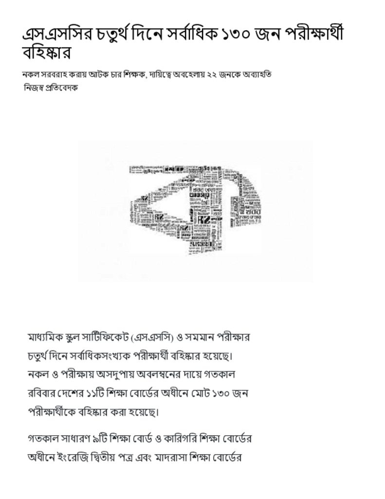এসএসসির চতুর্থ দিনে সর্বাধিক ১৩০ জন পরীক্ষার্থী বহিষ্কার.pdf Published on 08 May 2023 Newspaper দৈনিক কালের কন্ঠ Category Public Examination Public Examination SSC Download