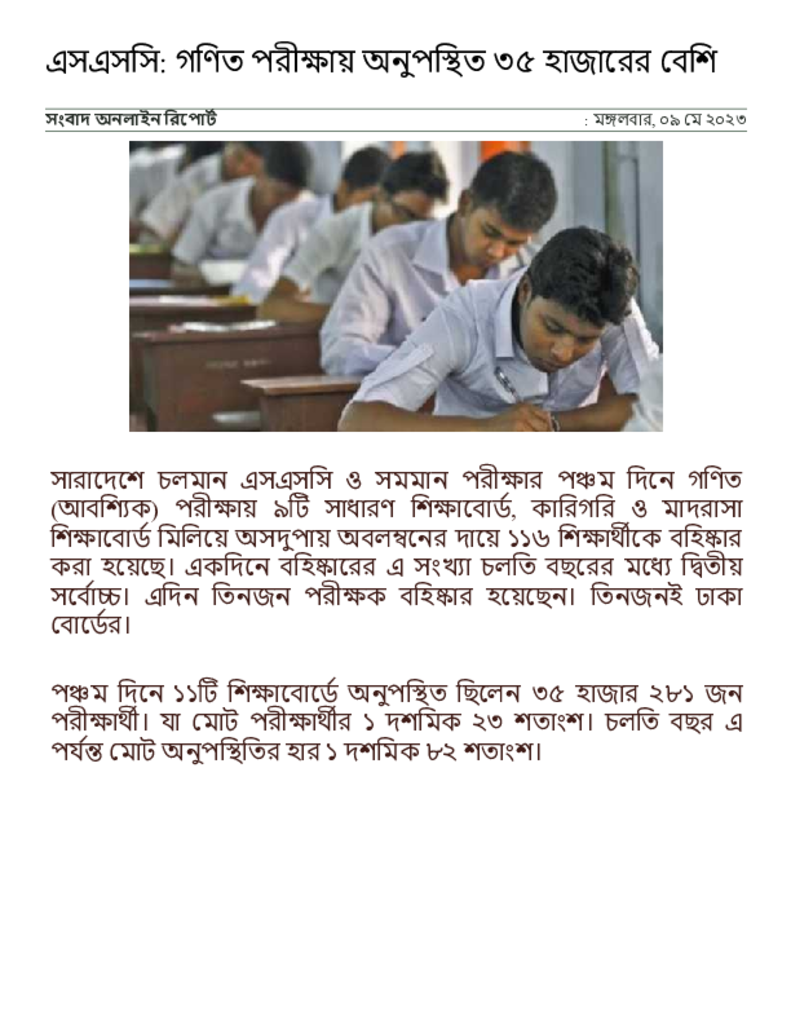 এসএসসি_ গণিত পরীক্ষায় অনুপস্থিত ৩৫ হাজারের বেশি _ সংবাদ অনলাইন.pdf Published on 09 May 2023 Newspaper দৈনিক সংবাদ Category Public Examination Public Examination SSC Download