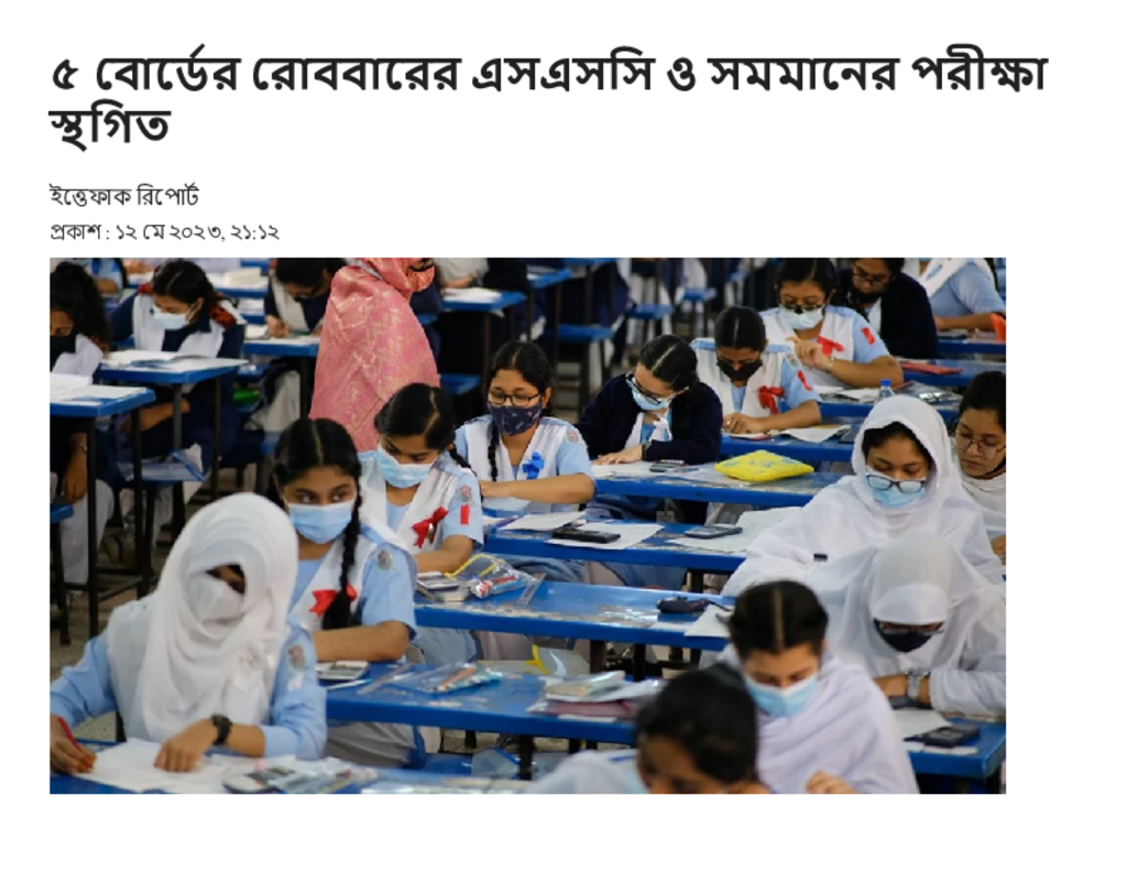৫ বোর্ডের রোববারের এসএসসি ও সমমানের পরীক্ষা স্থগিত.pdf Published on 12 May 2023 Newspaper দৈনিক ইত্তেফাক Category General Education Public Examination SSC Download