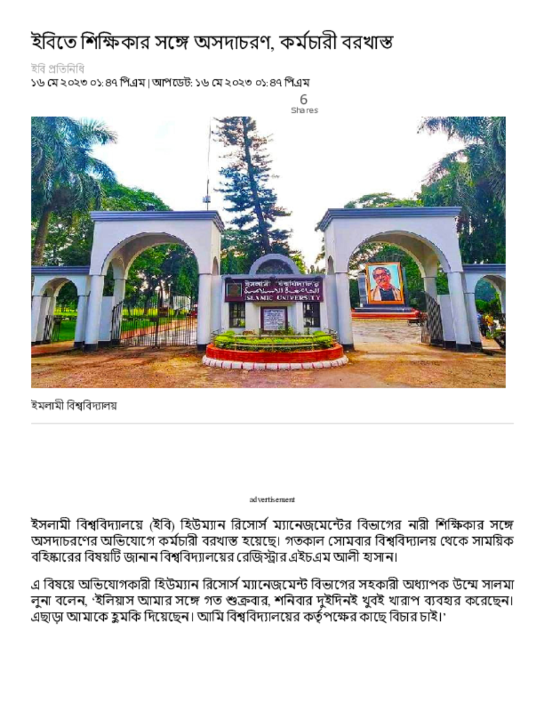 ইবিতে শিক্ষিকার সঙ্গে অসদাচরণ, কর্মচারী বরখাস্ত – Dainik Amader Shomoy.pdf Published on 16 May 2023 Newspaper দৈনিক আমাদের সময় Category Others General Education Download