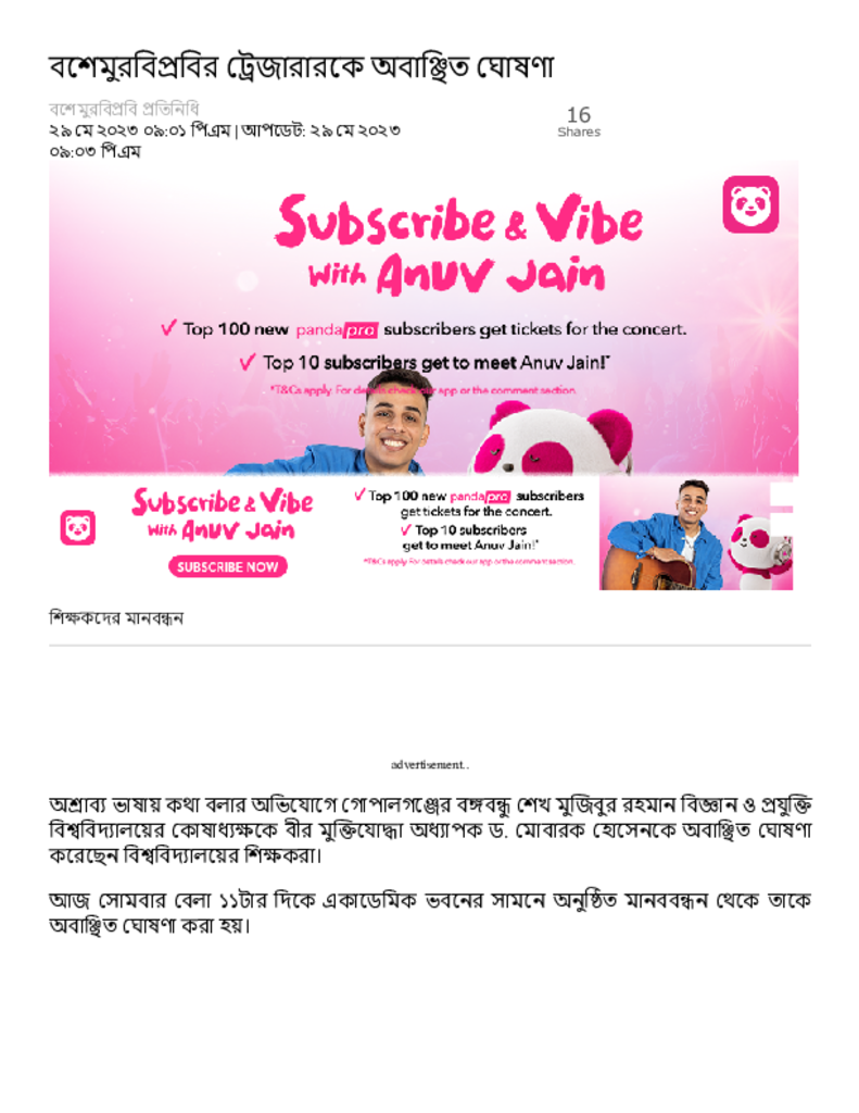 বশেমুরবিপ্রবির ট্রেজারারকে অবাঞ্ছিত ঘোষণা – Dainik Amader Shomoy.pdf Published on 29 May 2023 Newspaper দৈনিক আমাদের সময় Category Others Download