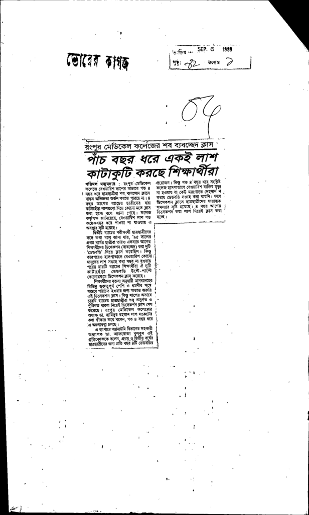 পাঁচ বছর ধরে একই লাশ কাটাকুটি করছে শিক্ষার্থীরা Published on Newspaper দৈনিক ভোরের কাগজ Category Professional Education Professional Education Medical Download