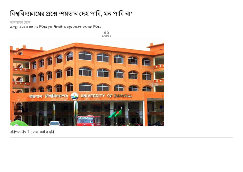 বিশ্ববিদ্যালয়ের প্রশ্নে ‘শয়তান দেহ পাবি, মন পাবি না’ – Dainik Amader Shomoy.pdf Published on 09 June 2023 Newspaper দৈনিক আমাদের সময় Category Others General Education Download