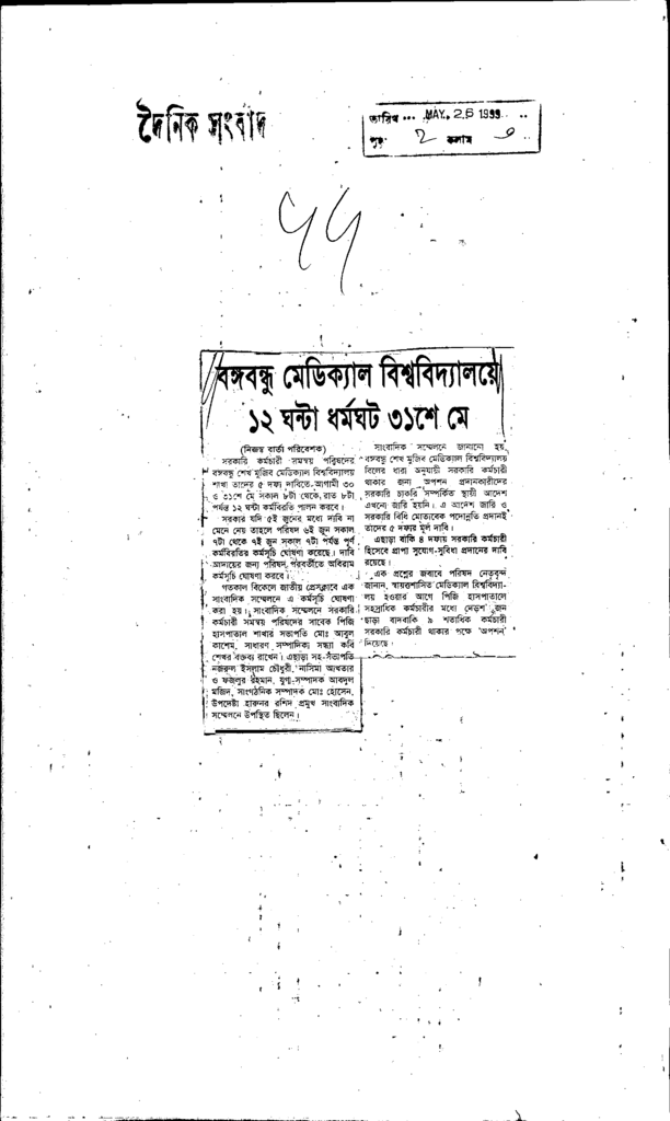 বঙ্গবন্ধু মেডিক্যাল বিশ্ববিদ্যালয়ে ১২ ঘন্টা ধর্মঘট ৩১শে মে Published on Newspaper দৈনিক সংবাদ Category Professional Education Professional Education Medical Download