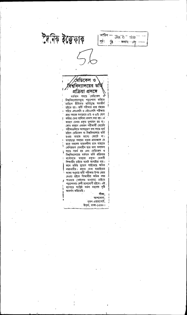 মেডিকেল ও বিশ্ববিদ্যালয়ের ভর্তি প্রক্রিয়া প্রসঙ্গে Published on Newspaper দৈনিক ইত্তেফাক Category Professional Education Professional Education Medical Download