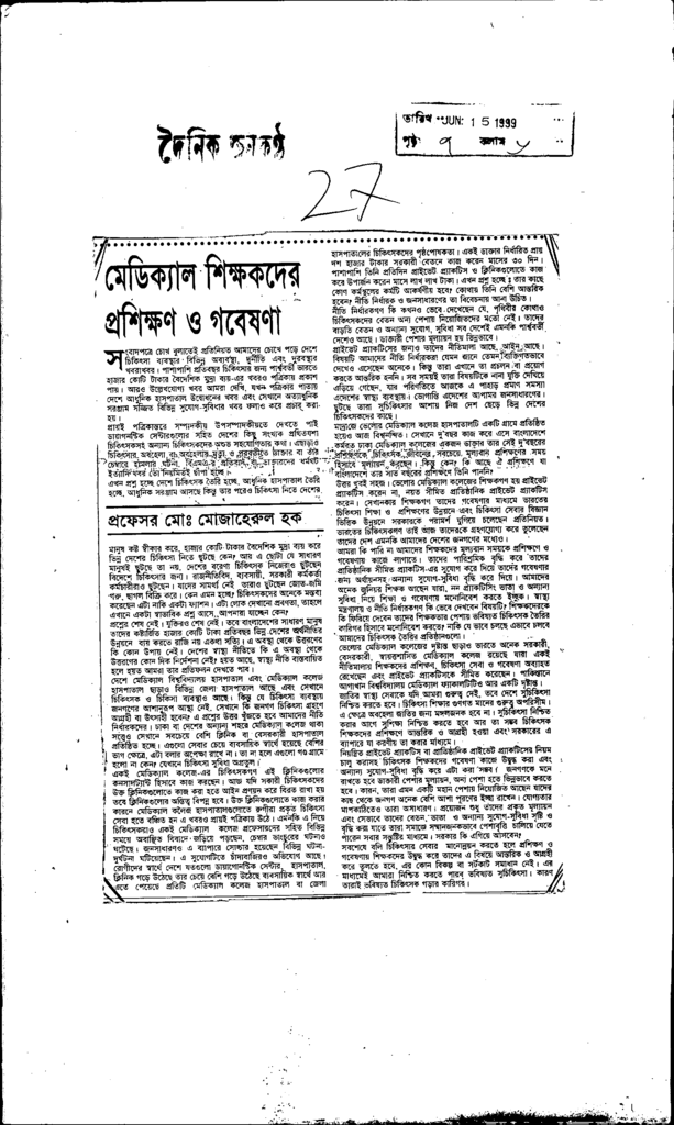 মেডিক্যাল শিক্ষকদের প্রশিক্ষণ ও গবেষণা Published on Newspaper দৈনিক জনকণ্ঠ Category Professional Education Professional Education Medical Download