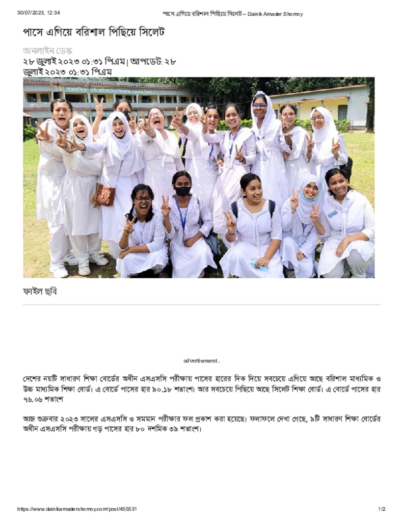 পাসে এগিয়ে বরিশাল পিছিয়ে সিলেট – Dainik Amader Shomoy Published on 28 July 2023 Newspaper দৈনিক আমাদের সময় Category Public Examination Public Examination SSC Download