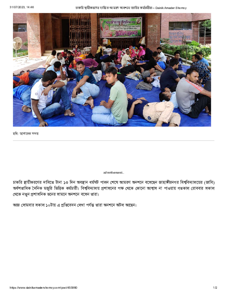 চাকরি স্থায়ীকরণের দাবিতে আমরণ অনশনে জাবির কর্মচারীরা – Dainik Amader Shomoy Published on 31 July 2023 Newspaper দৈনিক আমাদের সময় Category General Education General Education Download