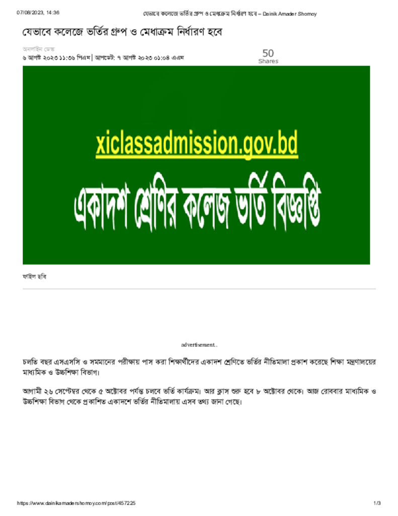 যেভাবে কলেজে ভর্তির গ্রুপ ও মেধাক্রম নির্ধারণ হবে – Dainik Amader Shomoy Published on 06 August 2023 Newspaper দৈনিক আমাদের সময় Category Admission / Seat Problem General Education Download
