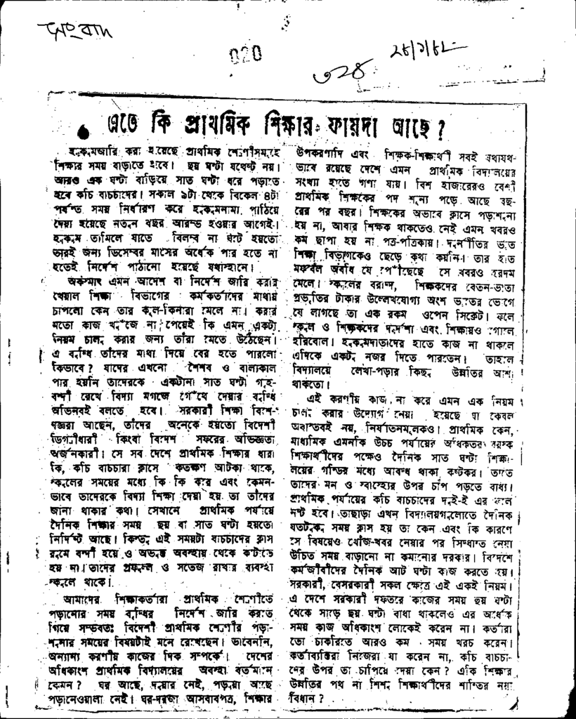 এতে কি প্রাথমিক শিক্ষার ফায়দা আছে Published on Newspaper দৈনিক সংবাদ Category General Education Download