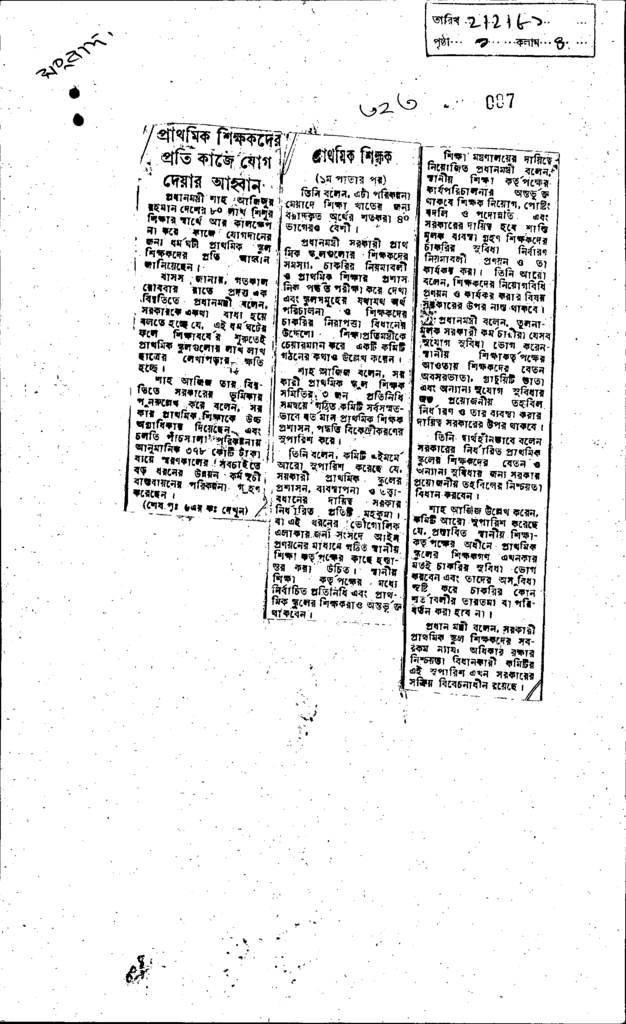 প্রাথমিক মিক্ষকদের প্রতি কাজে যোগ দেওয়ার আহব্বান Published on Newspaper দৈনিক সংবাদ Category General Education Download