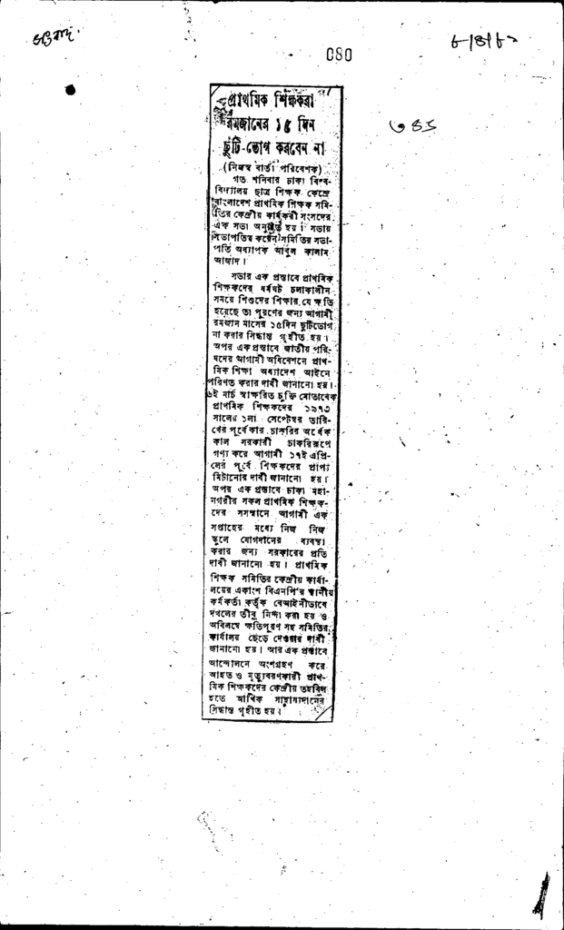 প্রাথমিক মিক্ষকরা রমজানের ১৫ দিন চুট ভোগ করবেন না Published on Newspaper দৈনিক সংবাদ Category General Education Download