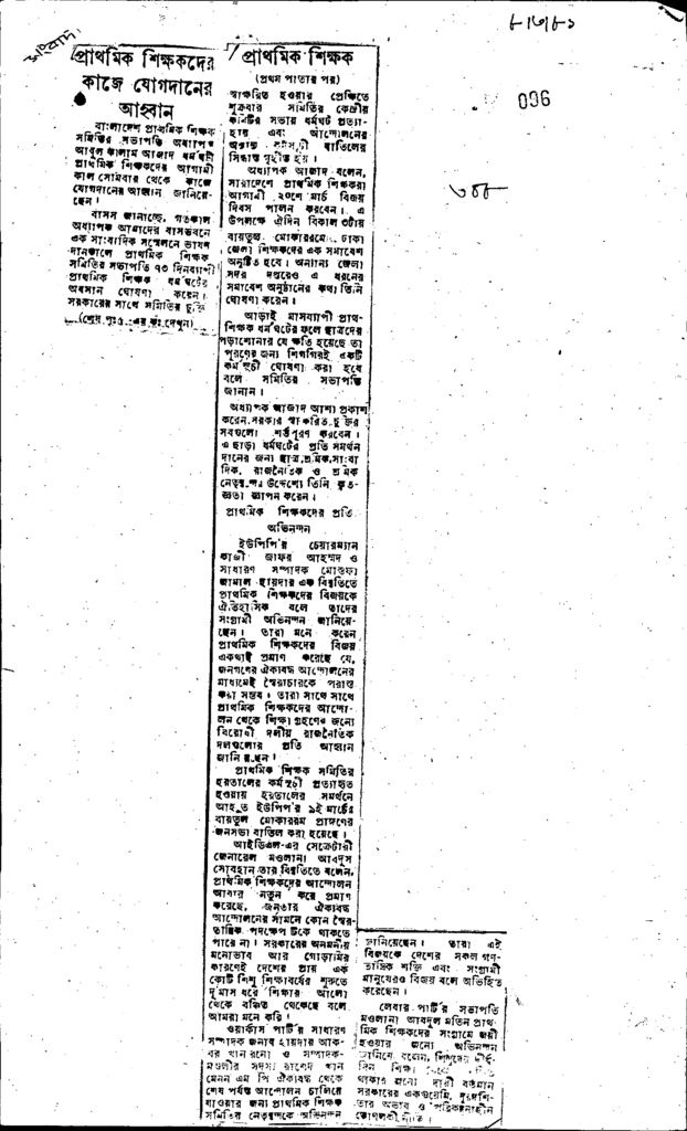 প্রাথমিক শিক্ষকদের কাজে যো্গদানের আহব্বান Published on Newspaper দৈনিক সংবাদ Category General Education Download
