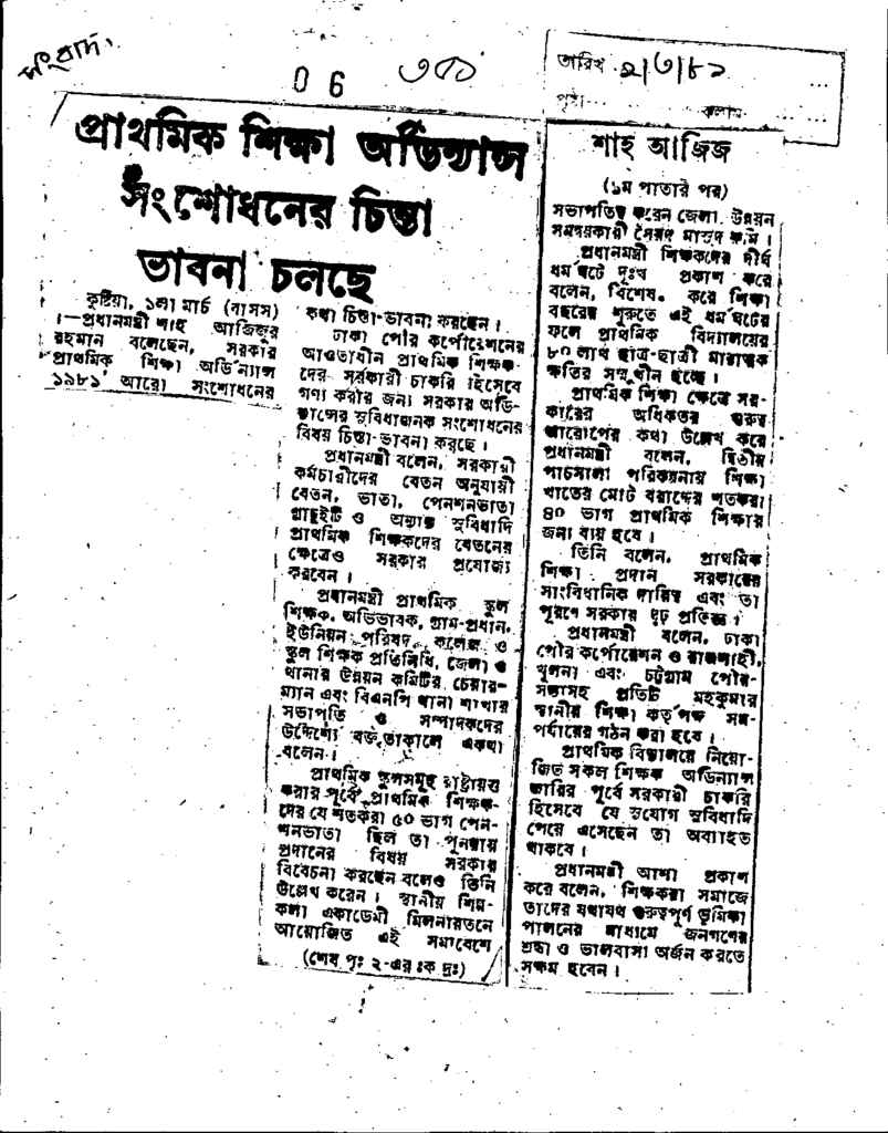 প্রাথমিক শিক্ষা অডিন্যাস সংশোধনের ভাবন চলছে Published on Newspaper দৈনিক সংবাদ Category General Education Download