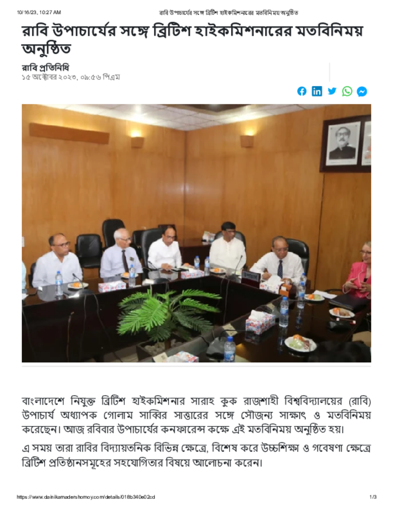 রাবি উপাচার্যের সঙ্গে ব্রিটিশ হাইকমিশনারের মতবিনিময় অনুষ্ঠিত.pdf Published on 15 October 2023 Newspaper দৈনিক আমাদের সময় Category Others General Education Download