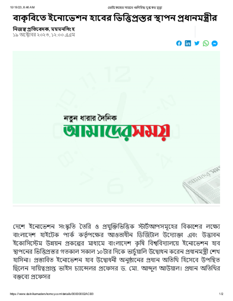 বাকৃবিতে ইনোভেশন হাবের ভিত্তিপ্রস্তর স্থাপন প্রধানমন্ত্রীর.pdf Published on 19 October 2023 Newspaper দৈনিক আমাদের সময় Category Professional Education General Education Download