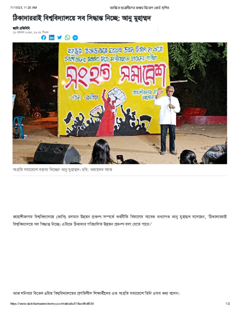 ঠিকাদাররাই বিশ্ববিদ্যালয়ে সব সিদ্ধান্ত নিচ্ছে আনু মুহাম্মদ Published on 11 November 2023 Newspaper দৈনিক আমাদের সময় Category Personal Opinion / Discussion / Commentary General Education Download